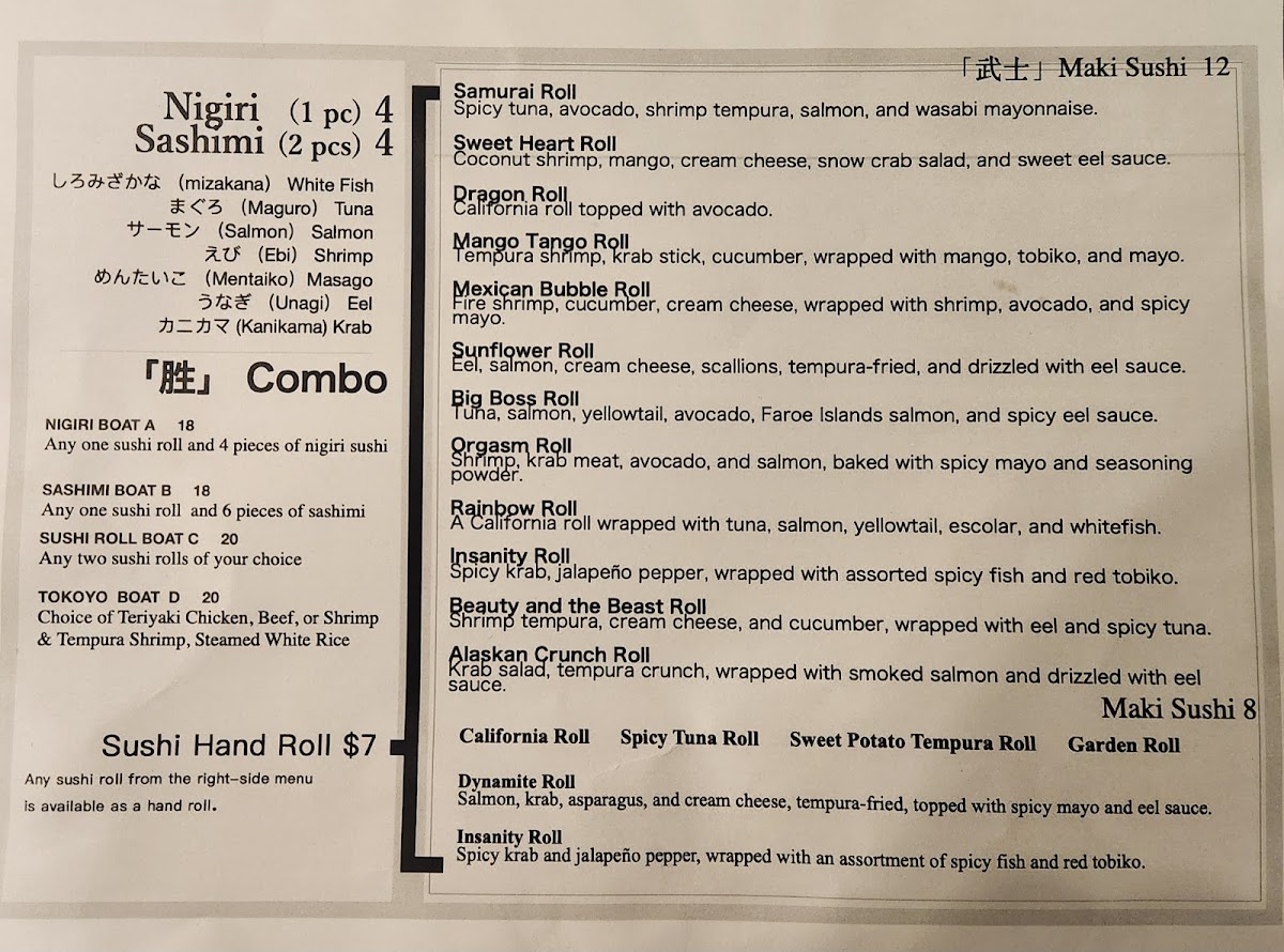 Jumbo Sushi Menu